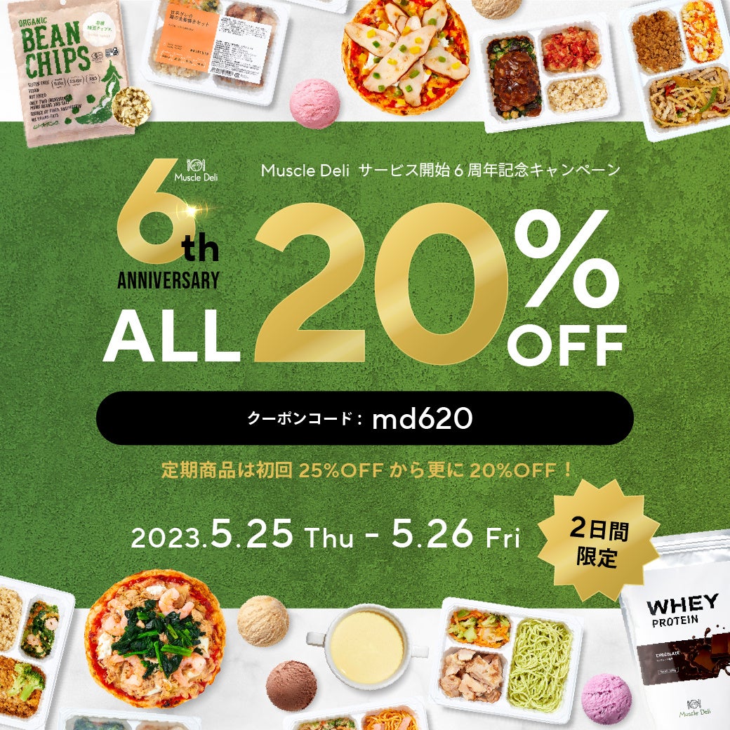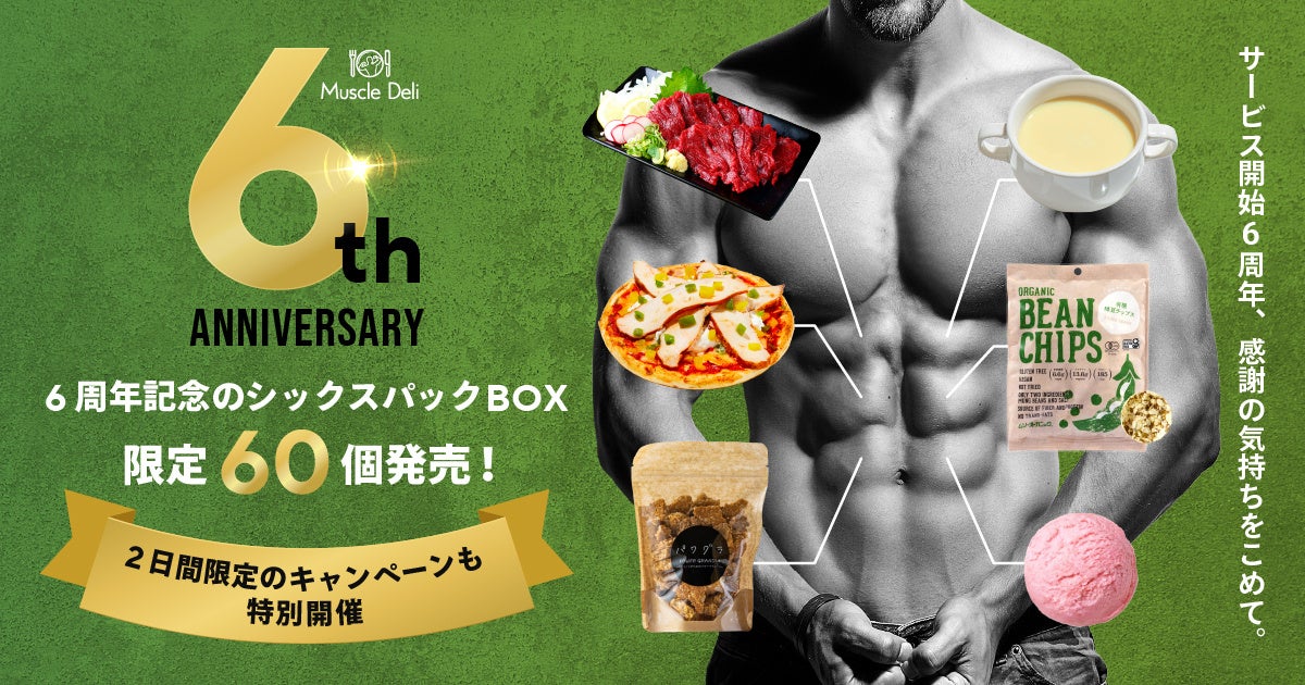 サービス開始6周年を記念して、マッスルデリの全商品が20%OFFになるキャンペーンを2日感限定で実施いたします。