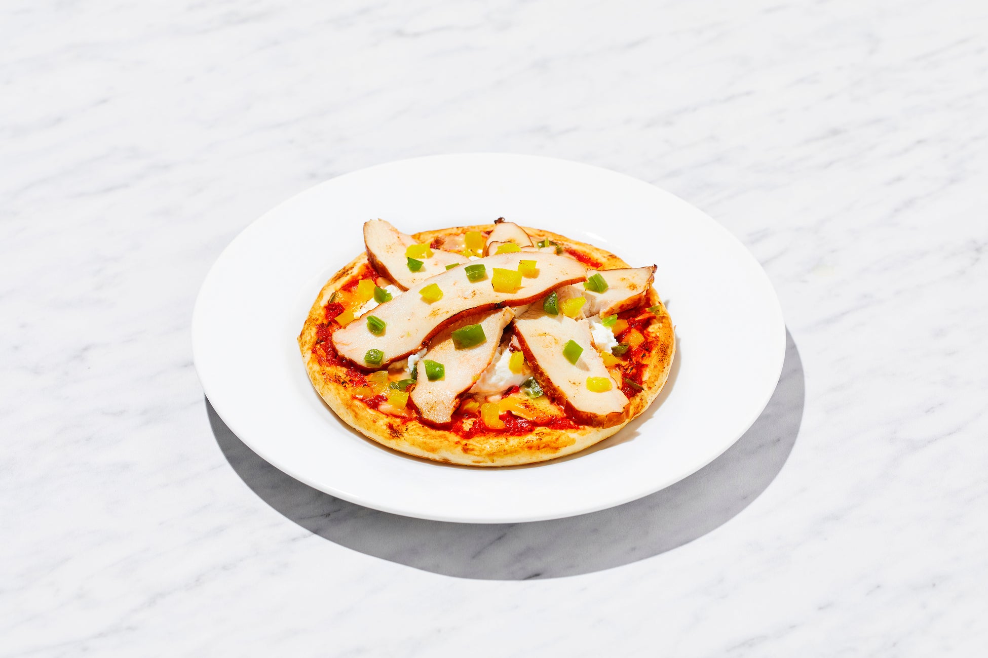 豪快なスモークチキンと、5種類のチーズが絶妙なハーモニーを奏で、口の中で広がる至