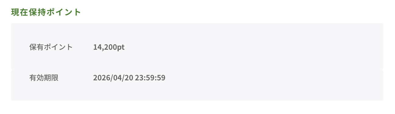 2.ページ中央部にある「現在保持ポイント」欄にてご確認いただけます