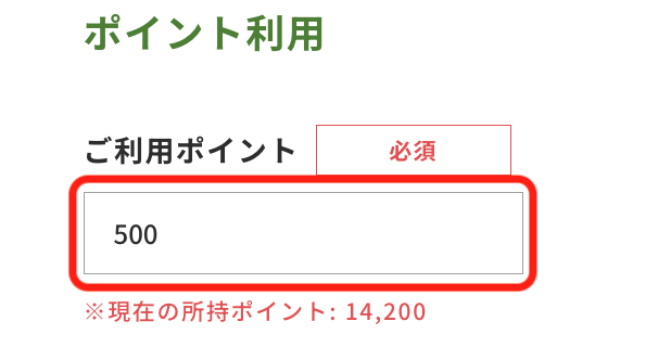 3.【ポイント利用】の項目に使用したいポイント数を入力し、購入を完了させる