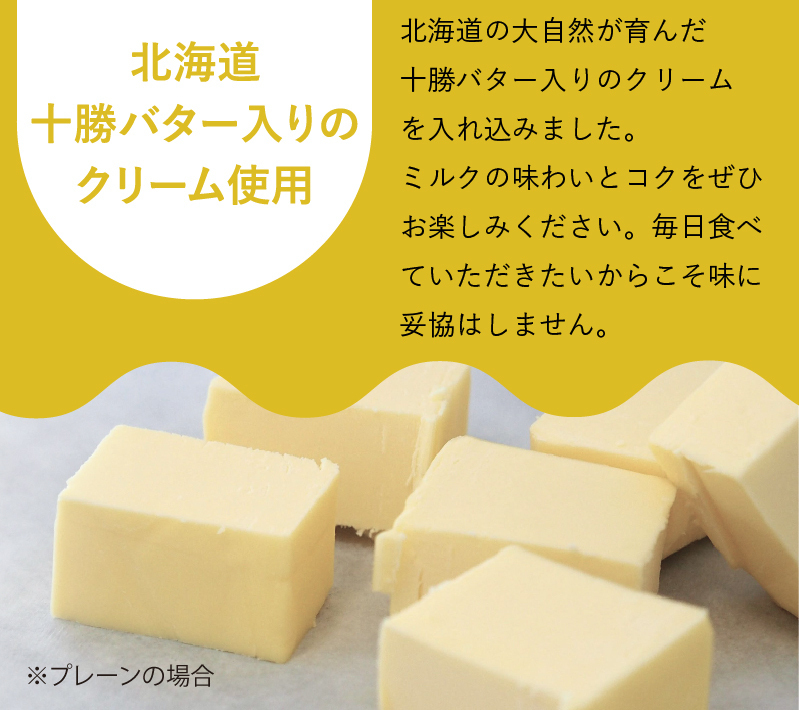 〇風味豊かな北海道バターやベルギーチョコ入りのクリームを使用。