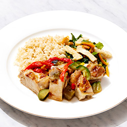 彩り野菜とローストチキン&トマト仕立ての白身魚セット